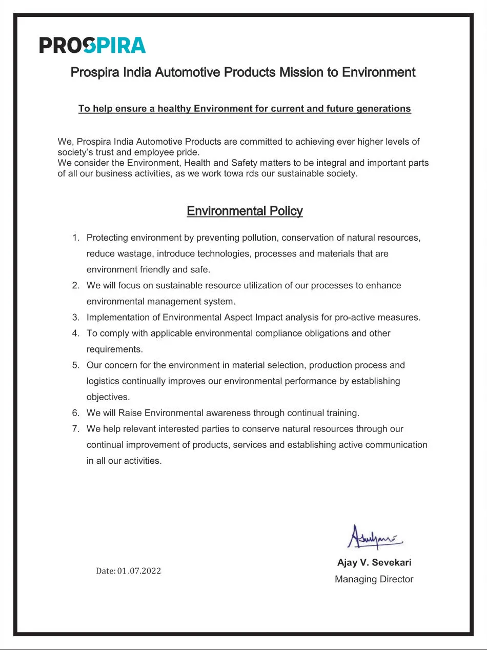 Our efforts to making tomorrow cleaner reflect from our green technology initiatives wherein we are focused on developing EV anti-vibration solutions. Besides reaching our targets, we shall also have a part, no matter how small, in our customers’ sustainability milestones.